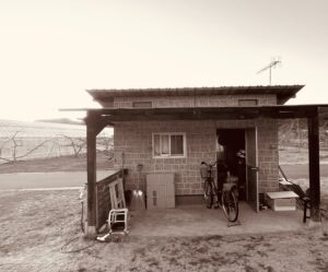 隠れて桃畑で小便する