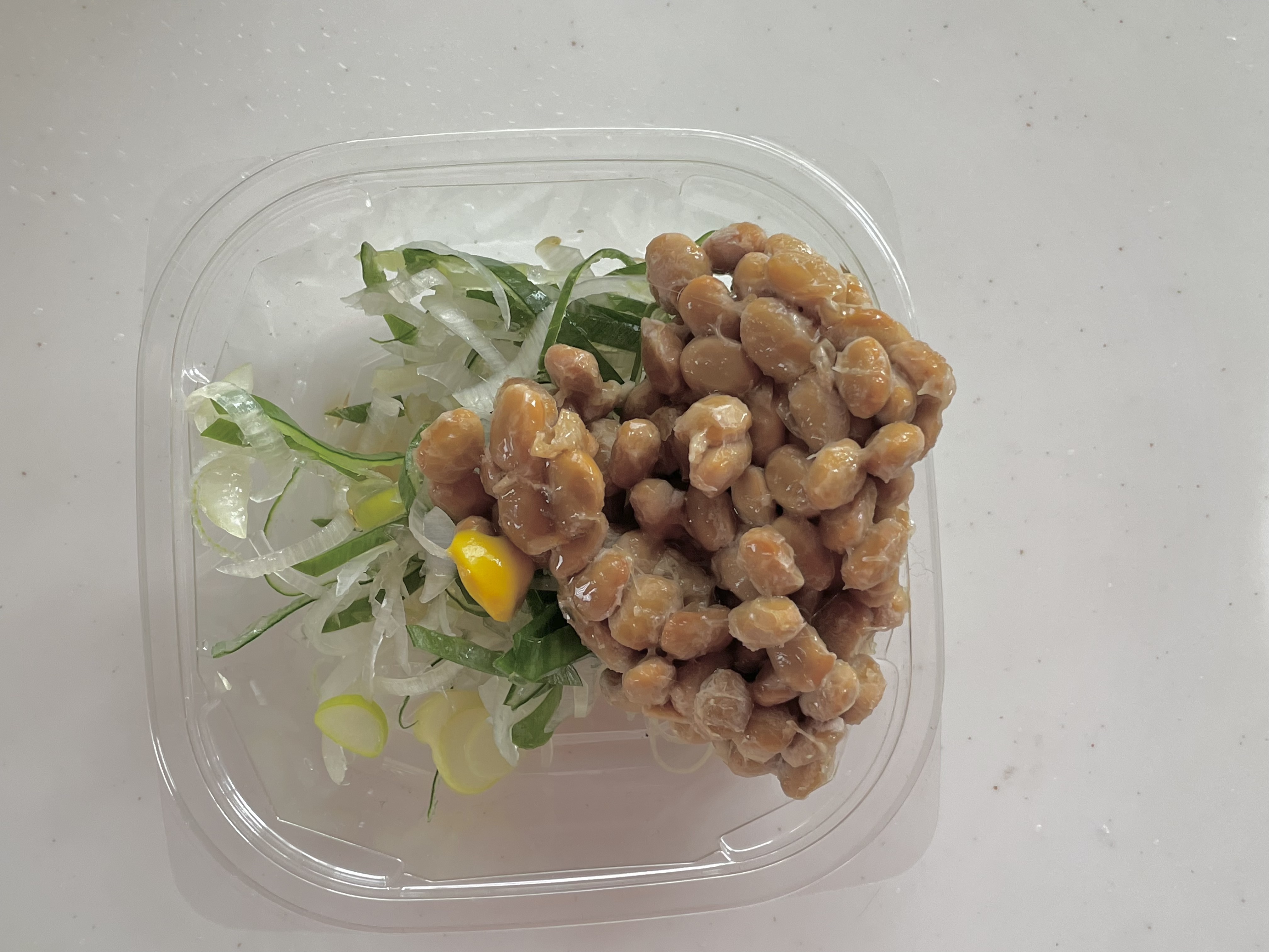 納豆容器の蓋を開けて