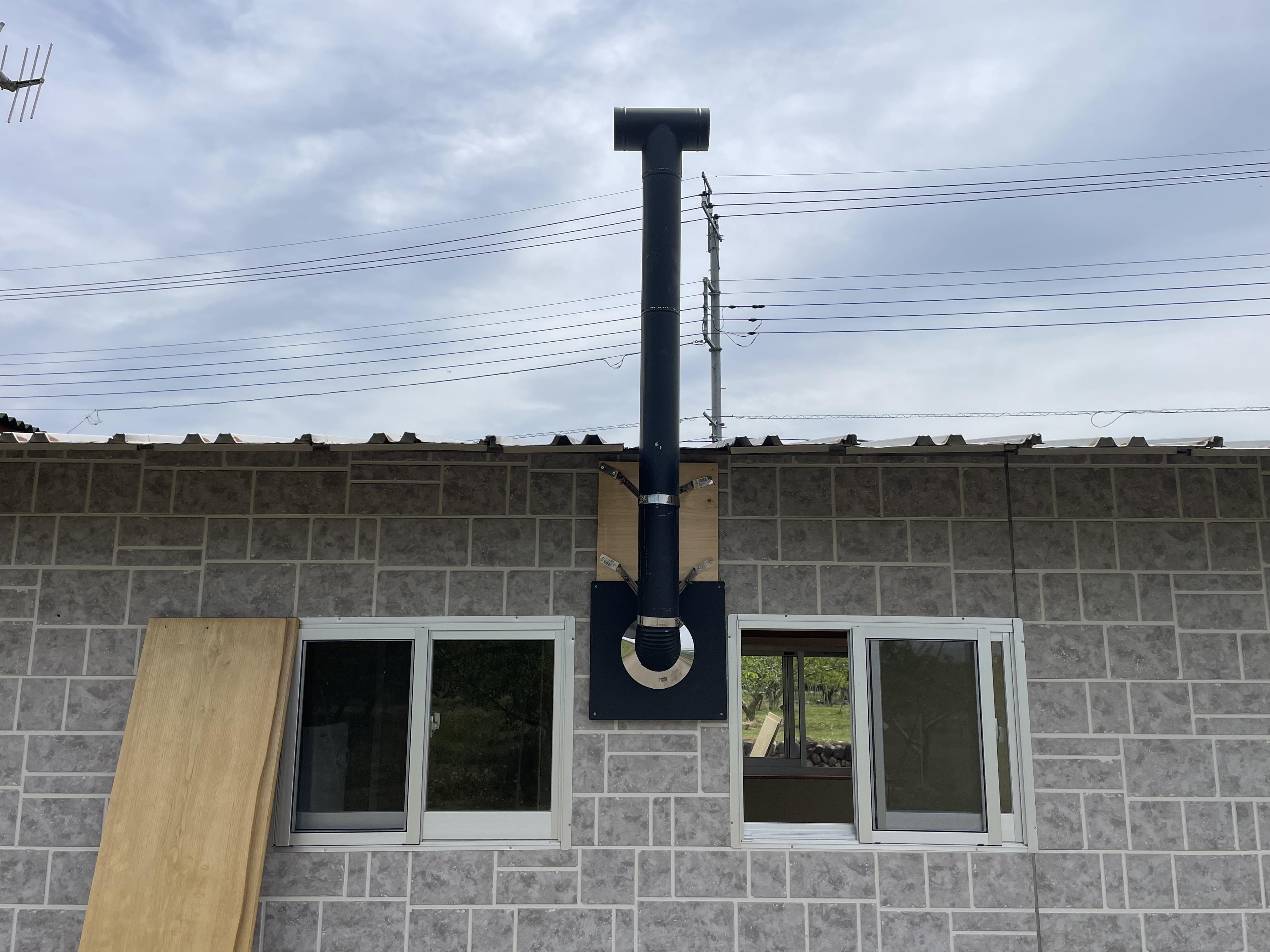ストーヴの煙突も高くした